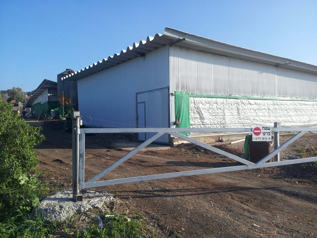 בניית לול במושב תעוז, גג הלול הינו גג קנלטה ייחודי המאפשר חלל נקי בלי מירשים